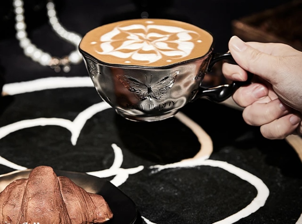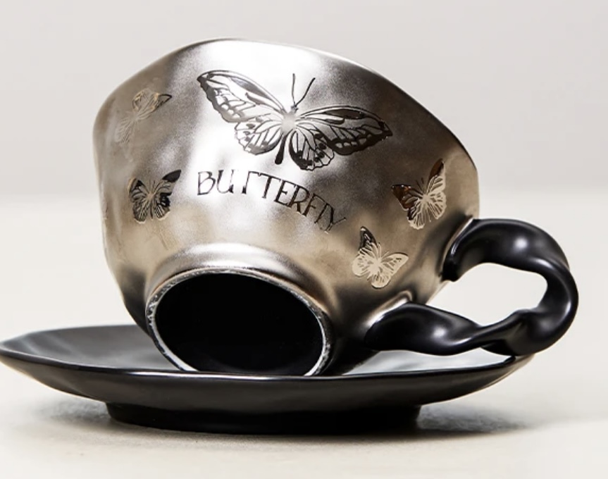 On every morning when you crave inspiration or at night when you need comfort, a special ceramic cup is waiting to meet you. It has a silver paint surface that resembles moonlight, cool and charming, like a mysterious halo flickering in the night sky. The dancing black butterfly, with delicate brushstrokes imprinted on it, adds a touch of liveliness and wildness to this coldness.